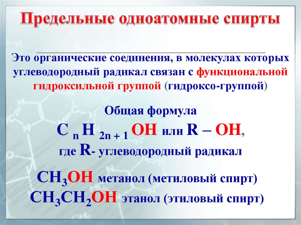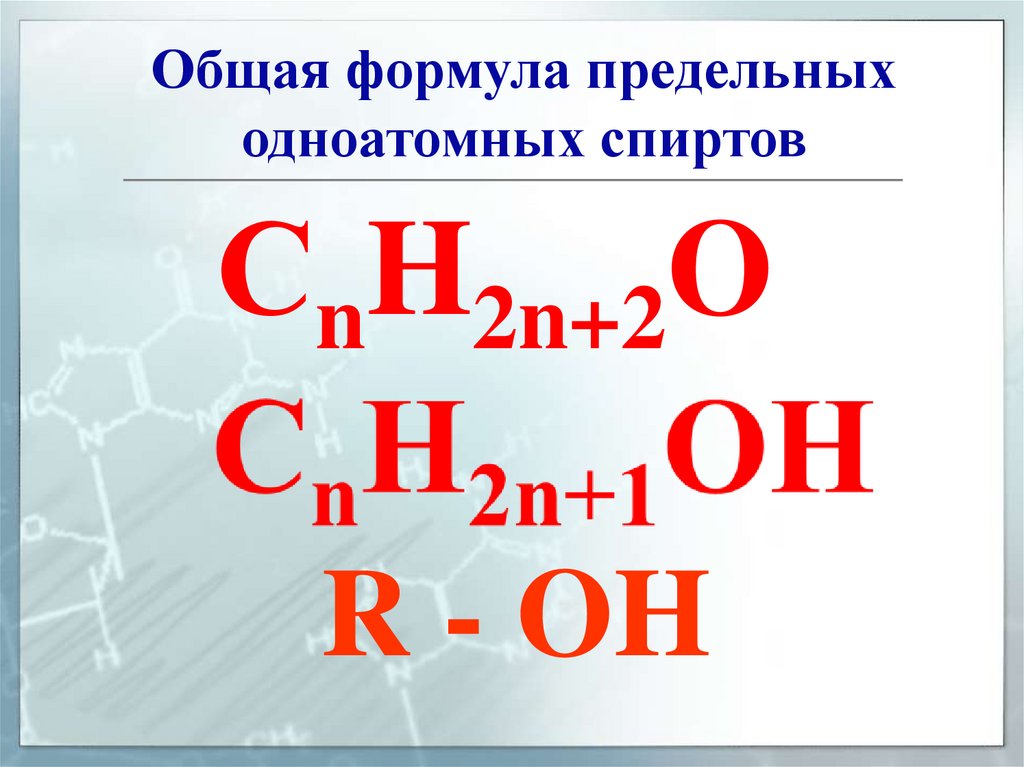 C n H 2n + 1 OH или R – OH,