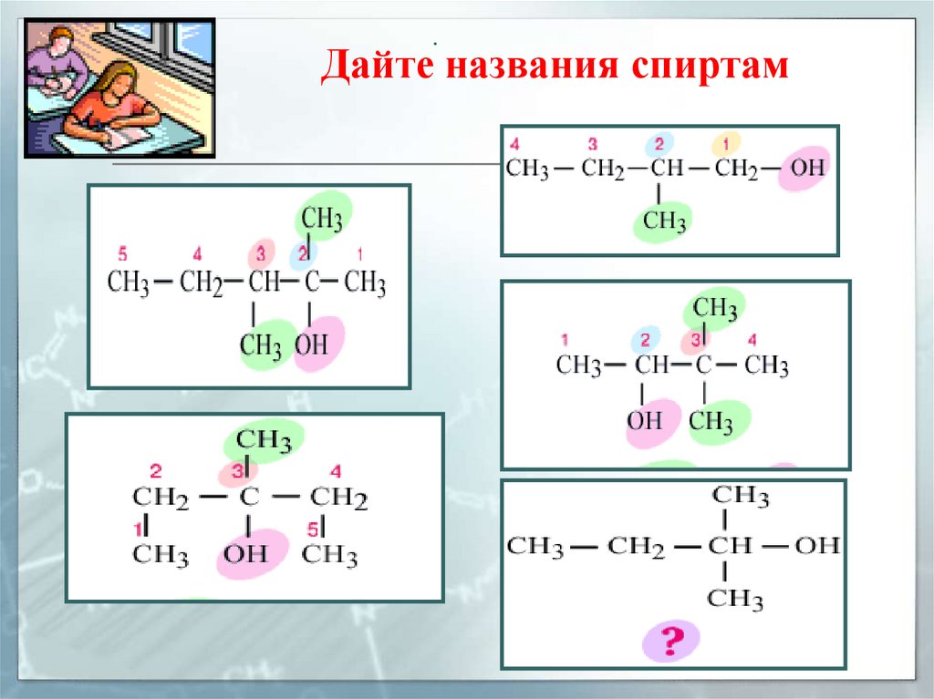 .Дайте названия спиртам