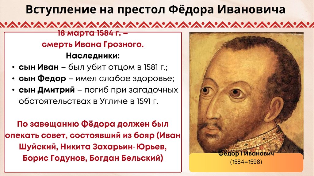 Вступление на престол Фёдора Ивановича(1584 1598)