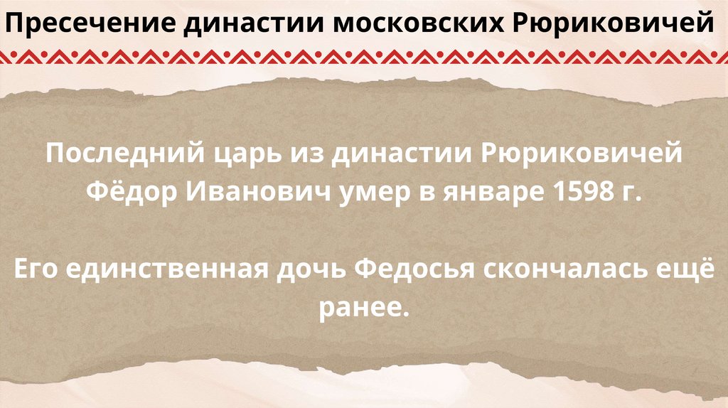 Пресечение династии московских РюриковичейПоследний царь из династии Рюриковичей
