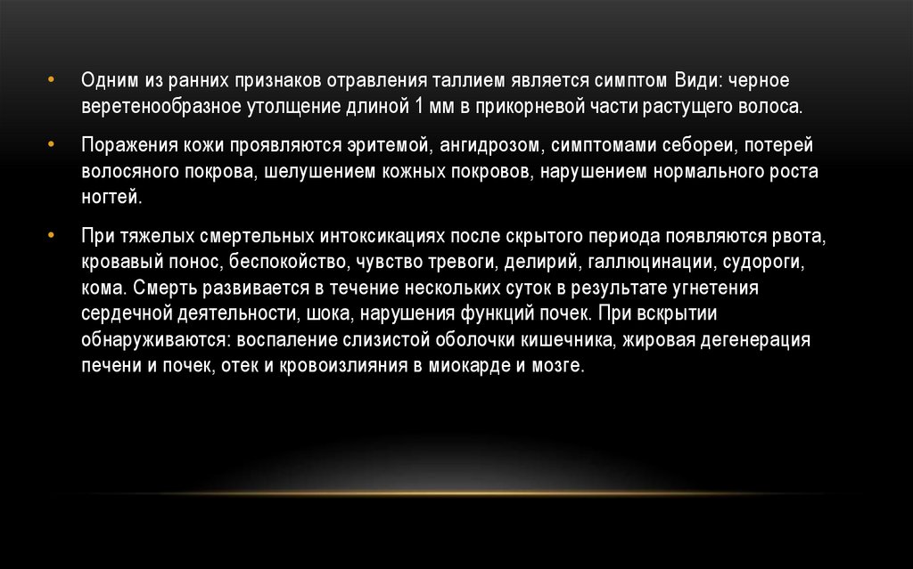 отравления солями тяжелых металлов. Исключение составляют соли таллия, служащие