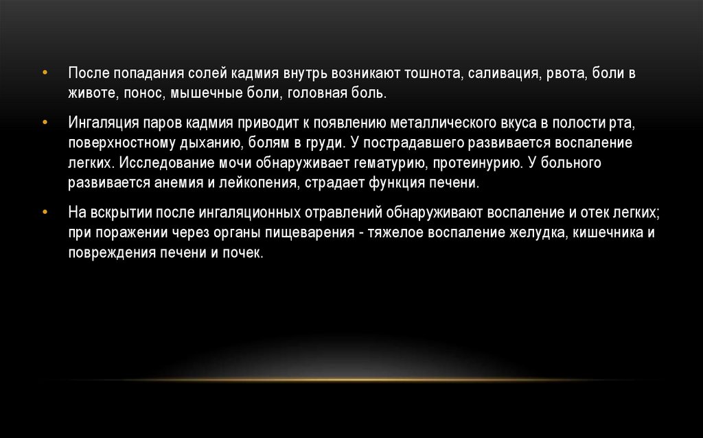КЛИНИЧЕСКАЯ КАРТИНАПосле приема внутрь растворимых солей ртути или свинца возникает острый