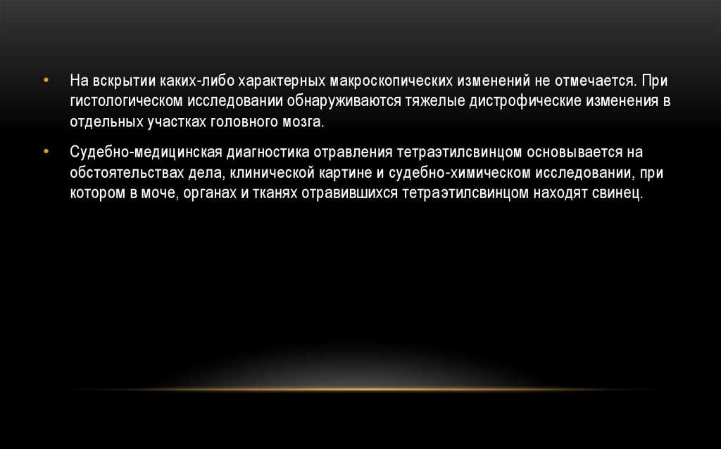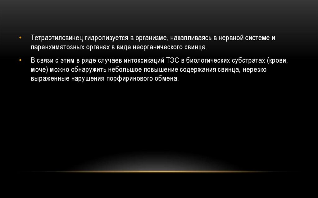 котором в моче, органах и тканях отравившихся тетраэтилсвинцом находят свинец.