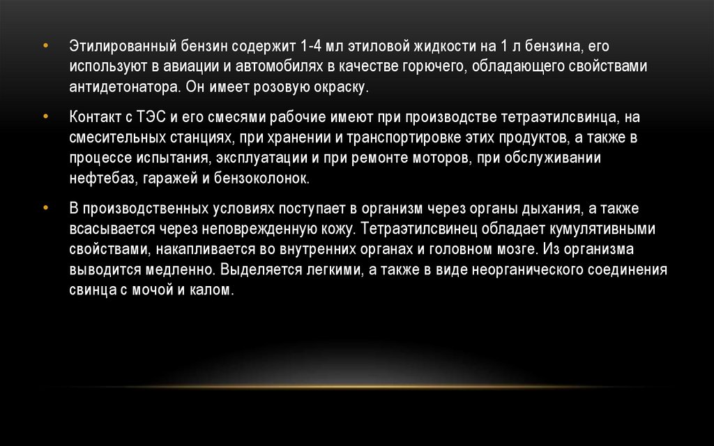Контакт с ТЭС и его смесями рабочие имеют при производстве тетраэтилсвинца, на