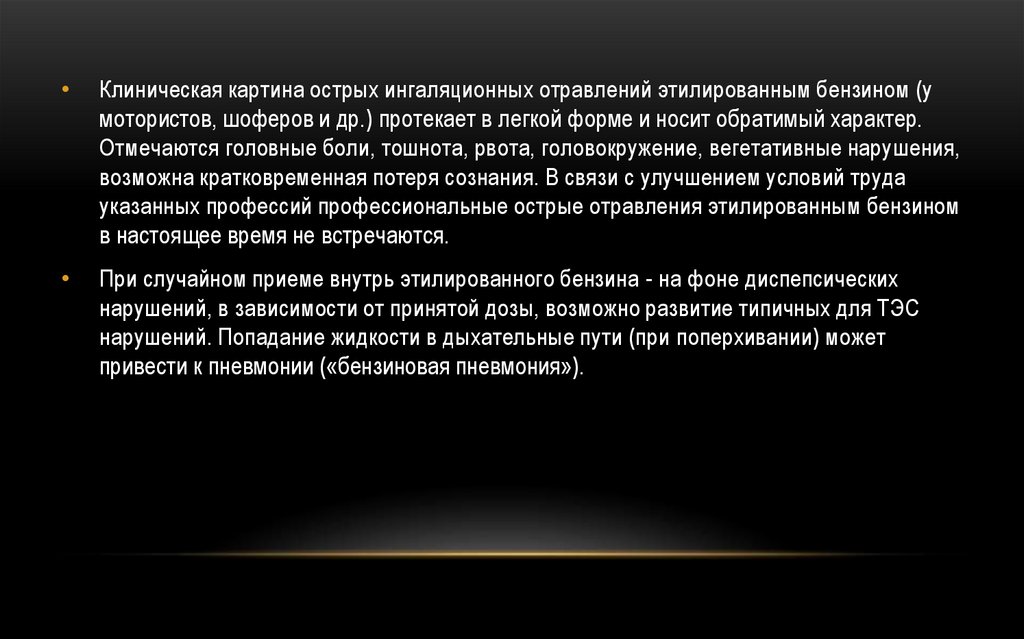 Клиническая картина острых ингаляционных отравлений этилированным бензином (у