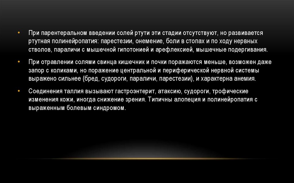 При парентеральном введении солей ртути эти стадии отсутствуют, но развивается