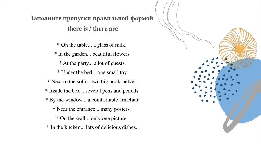 Заполните пропуски правильной формойthere is / there are