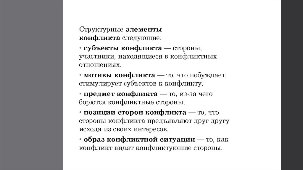 •анализ убеждений, целей и мнений конфликтующих сторон;
