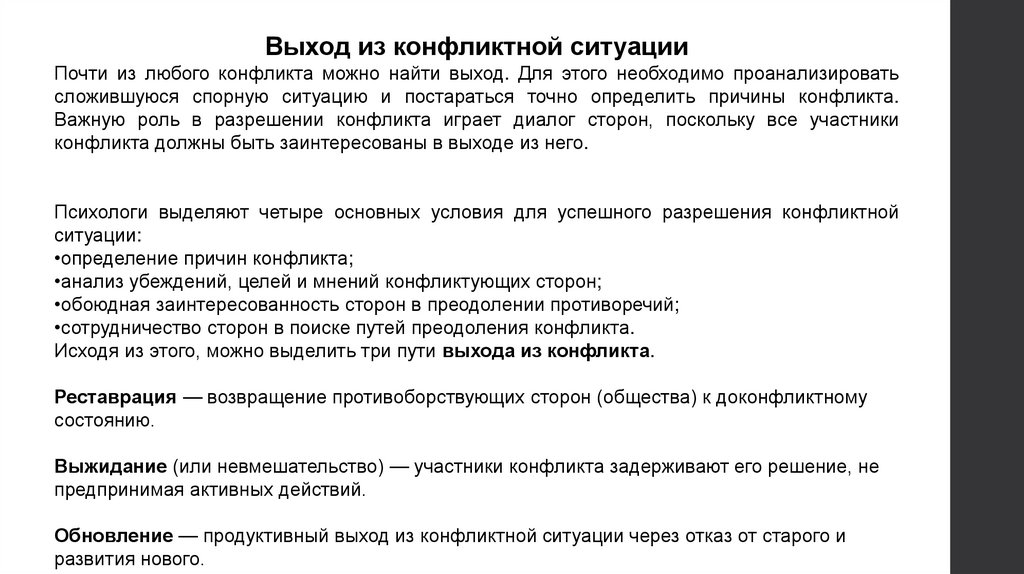 Исходя из этого, можно выделить три пути выхода из конфликта.