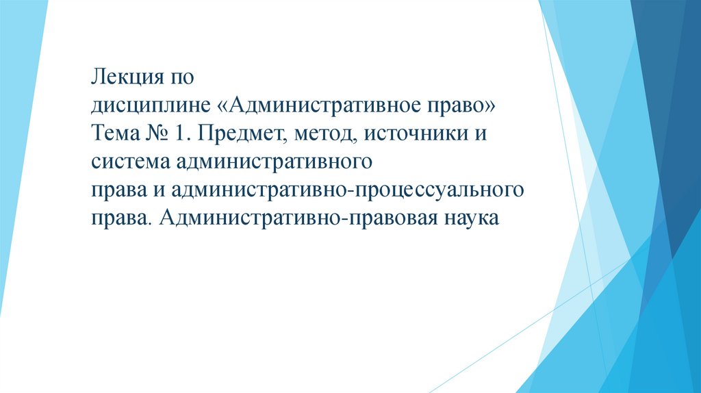 1. Лекция по дисциплине «Административное право» Тема № 1. Предмет, метод, источники и система административного права и
