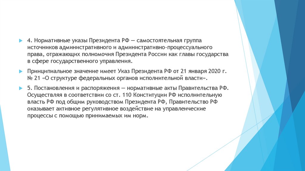 4. Нормативные указы Президента РФ — самостоятельная группаисточников административного и административно-процессуального