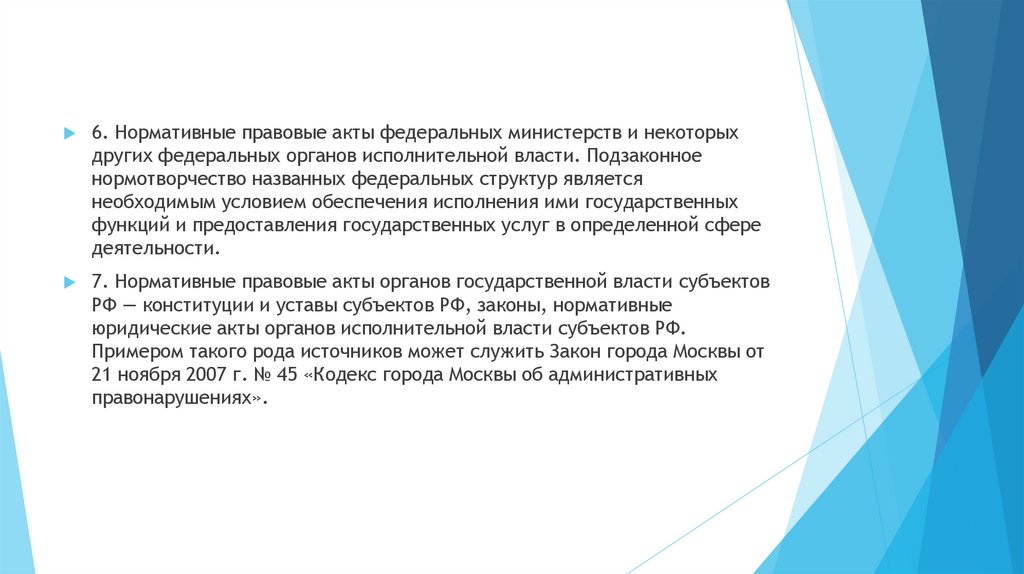 6. Нормативные правовые акты федеральных министерств и некоторыхдругих федеральных органов исполнительной власти. Подзаконное