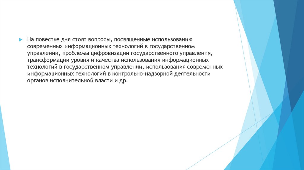 На повестке дня стоят вопросы, посвященные использованиюсовременных информационных технологий в государственном