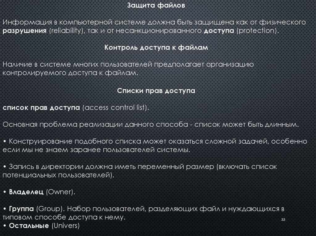 Защита файловИнформация в компьютерной системе должна быть защищена как от физического