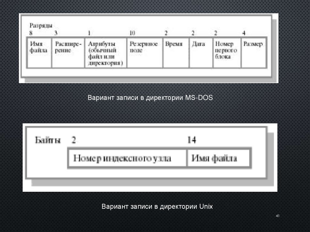 Вариант записи в директории MS-DOSВариант записи в директории Unix