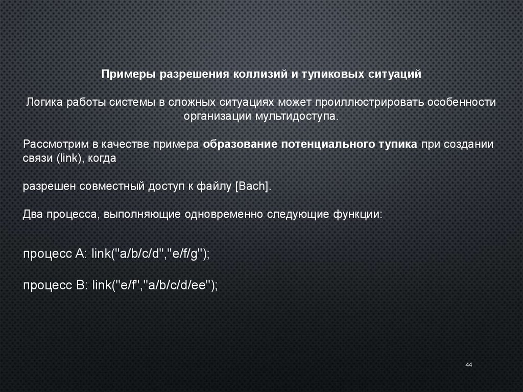 Примеры разрешения коллизий и тупиковых ситуацийЛогика работы системы в сложных ситуациях может проиллюстрировать особенности