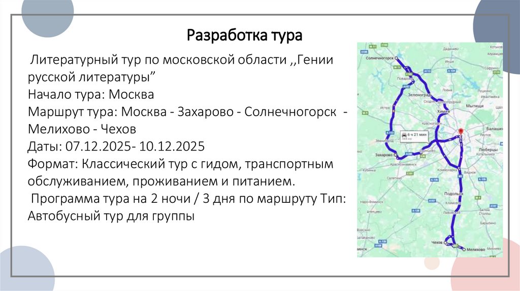 Маршрут тура: Москва - Захарово - Солнечногорск Мелихово - Чехов