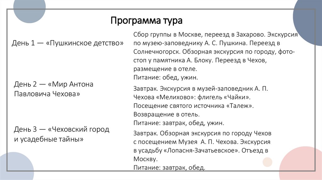 Программа тура на 2 ночи / 3 дня по маршруту Тип:
