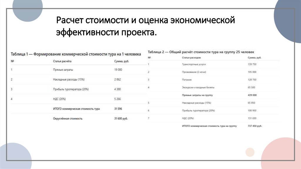 Расчет стоимости и оценка экономическойэффективности проекта.