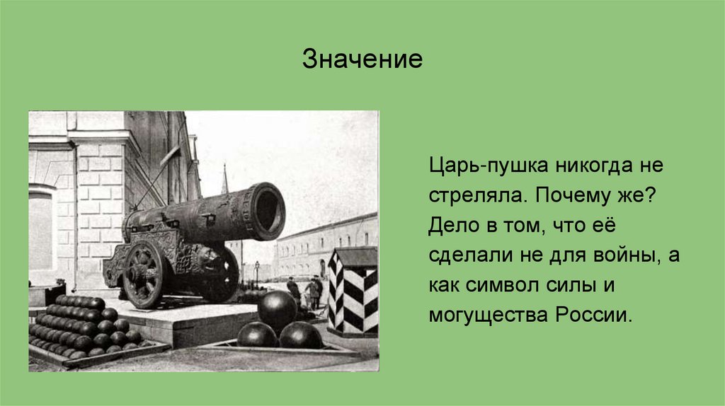 ЗначениеЦарь-пушка никогда не