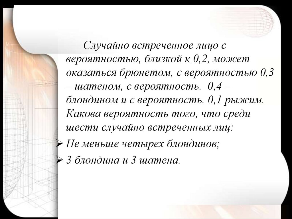 – шатеном, с вероятность. 0,4 –