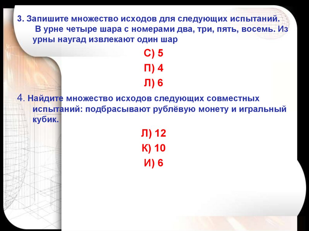4. Найдите множество исходов следующих совместных