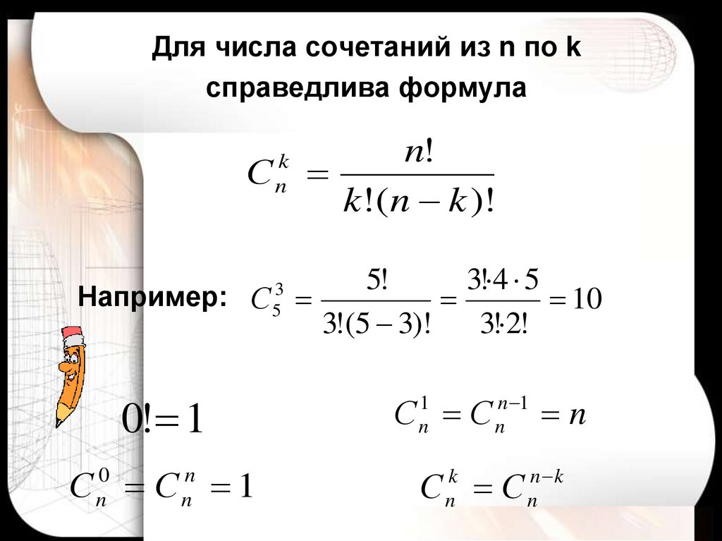 Для числа сочетаний из n по kсправедлива формула