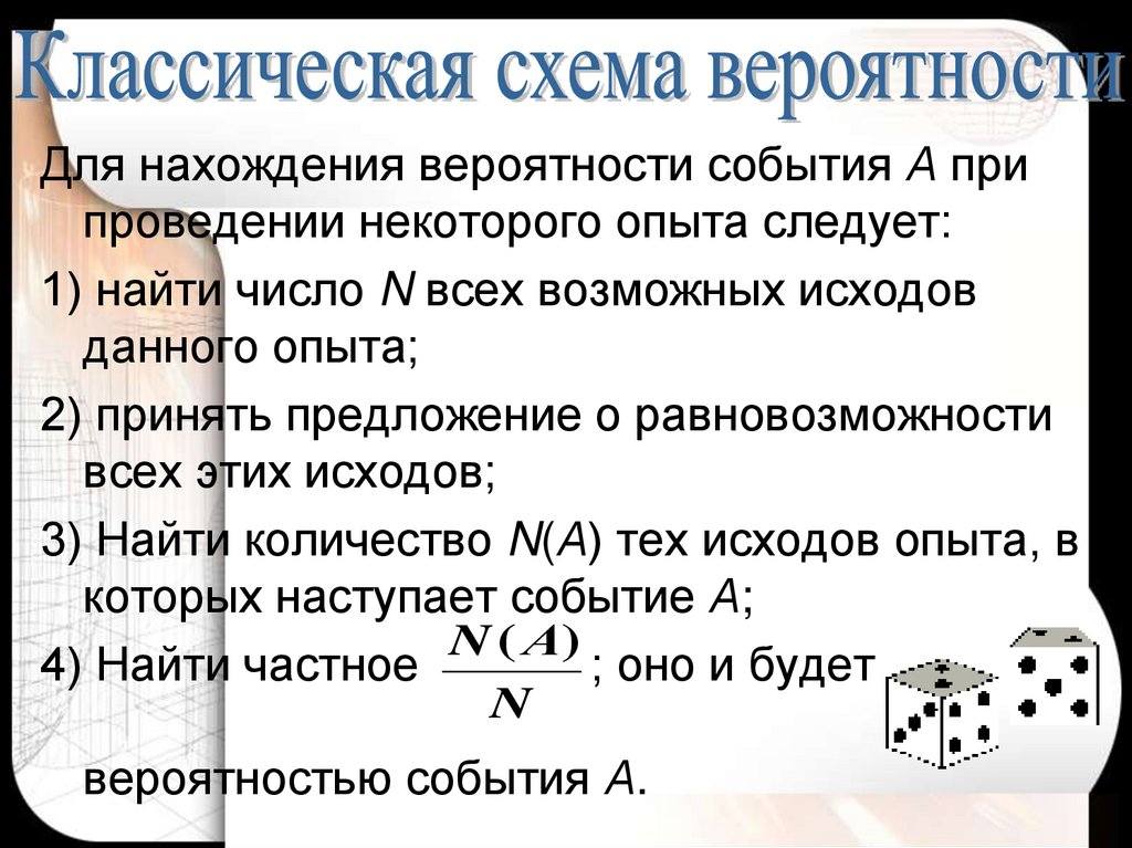 числа благоприятных исходов N(А)