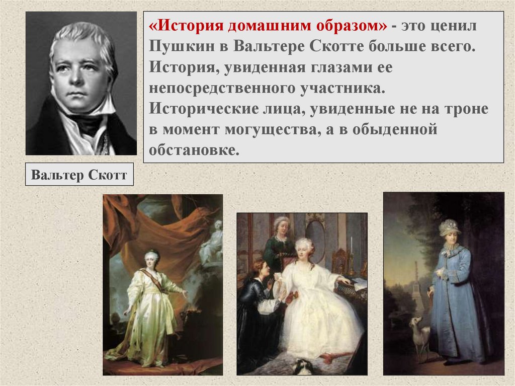 «История домашним образом» - это ценилПушкин в Вальтере Скотте больше всего.