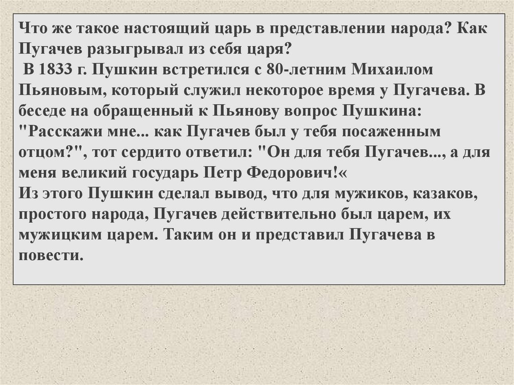 Из этого Пушкин сделал вывод, что для мужиков, казаков,