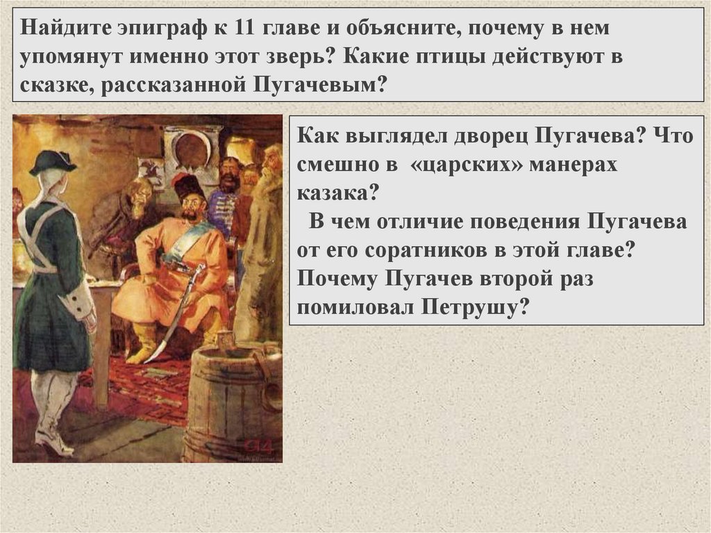 Найдите эпиграф к 11 главе и объясните, почему в немупомянут именно этот зверь? Какие птицы действуют в