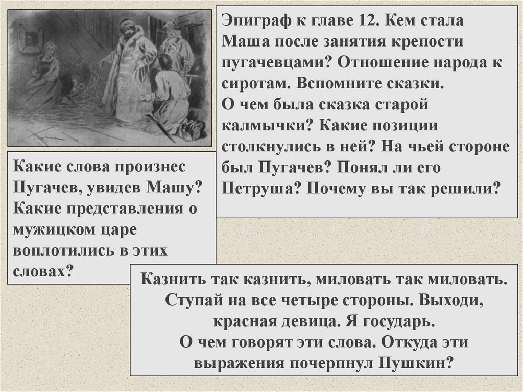 "Расскажи мне... как Пугачев был у тебя посаженным