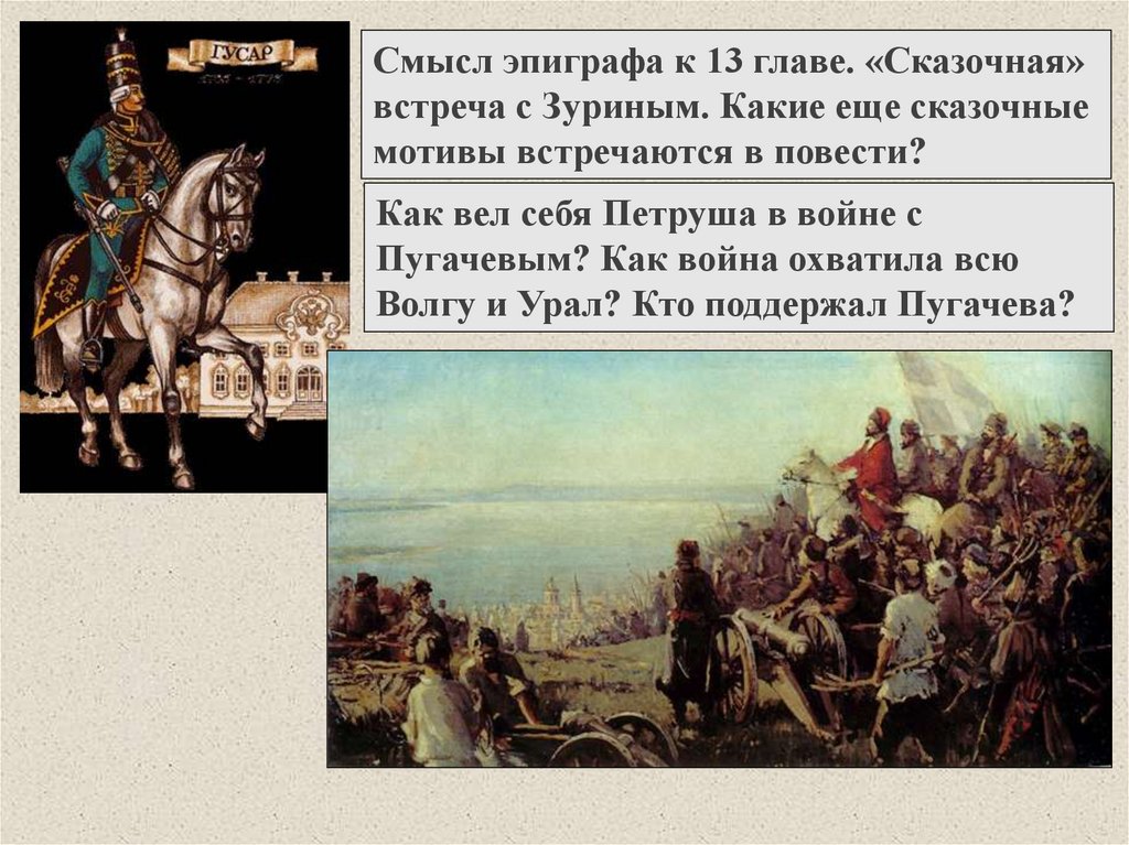 Смысл эпиграфа к 13 главе. «Сказочная»встреча с Зуриным. Какие еще сказочные