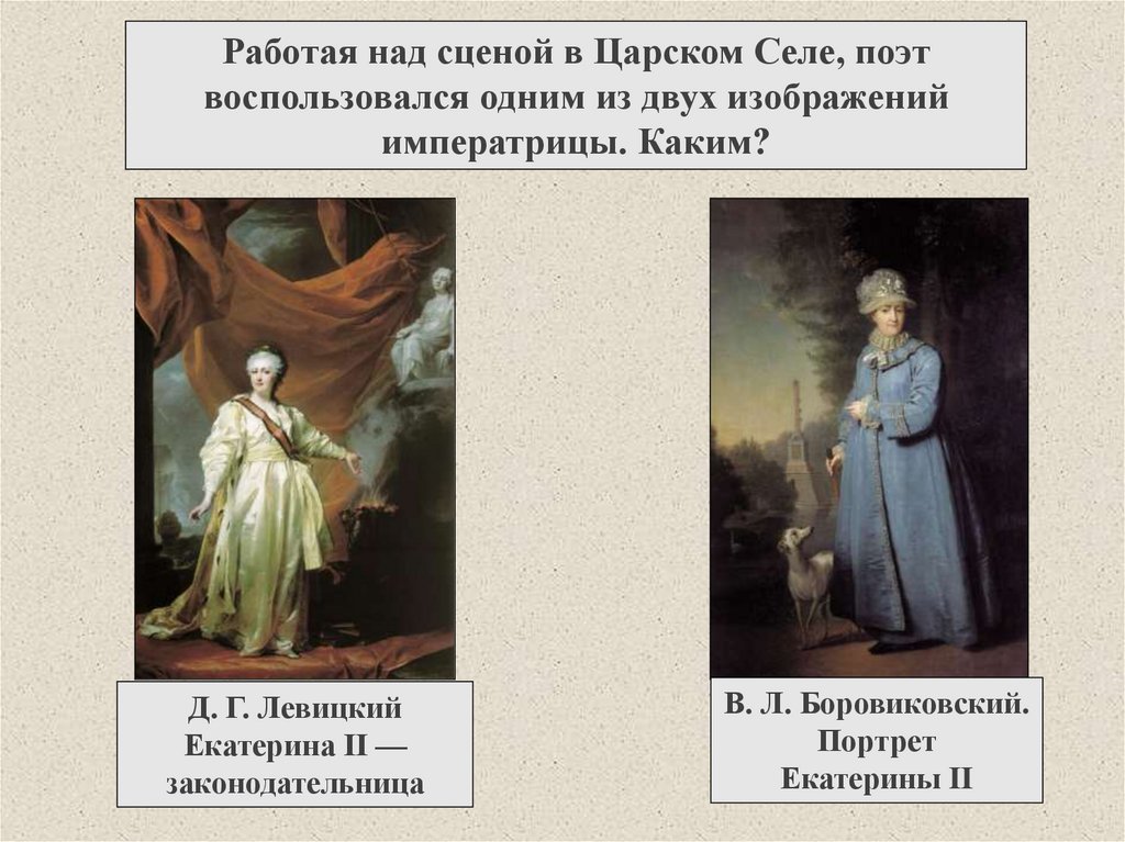 Работая над сценой в Царском Селе, поэтвоспользовался одним из двух изображений