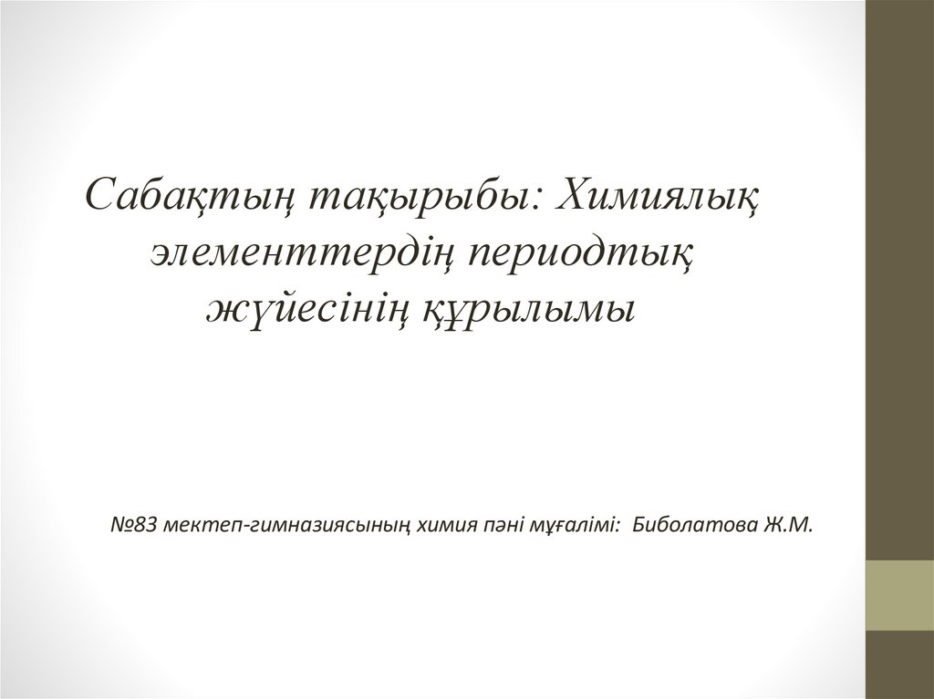 Сабақтың тақырыбы: Химиялықэлементтердің периодтық