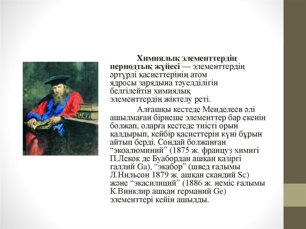түседі. Химиялық элементтердің периодтық жүйесі ашылған