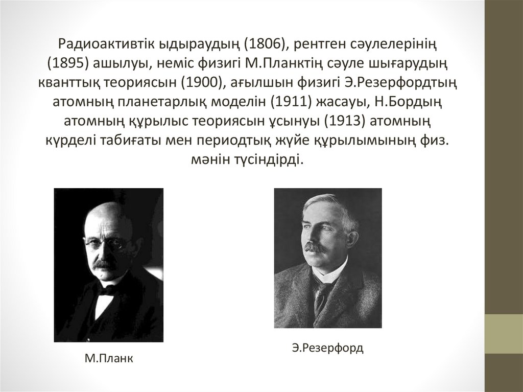 кванттық теориясын (1900), ағылшын физигі Э.Резерфордтың