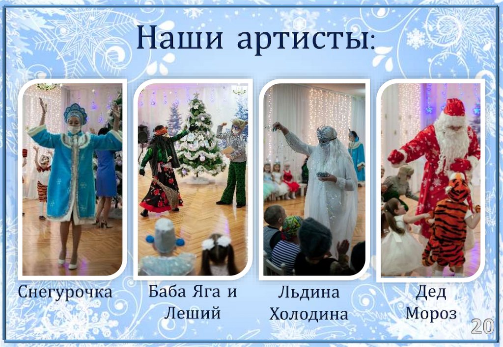 занятыми в ролях: Дед Мороз,