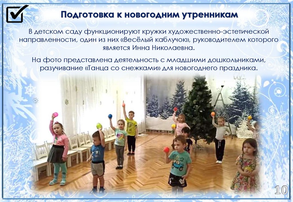 Подготовка к новогодним утренникамВ детском саду функционируют кружки художественно-эстетической