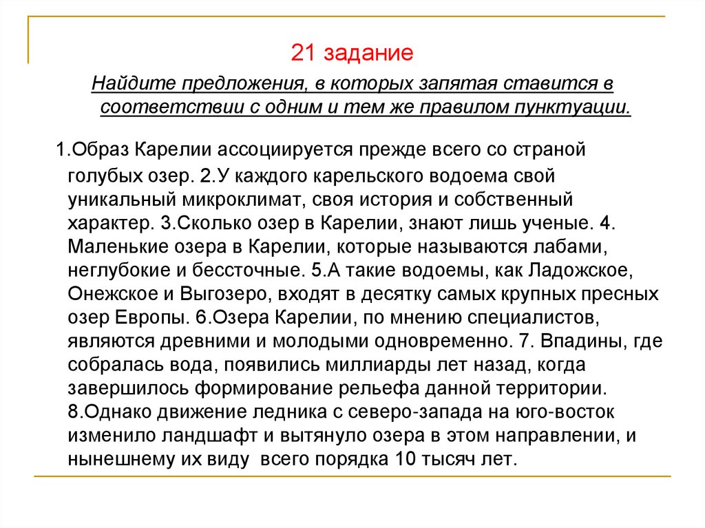 характер. 3.Сколько озер в Карелии, знают лишь ученые. 4.