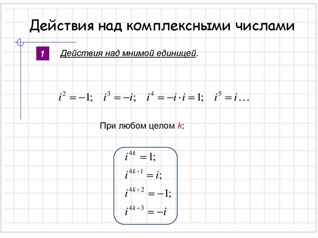Действия над мнимой единицей.