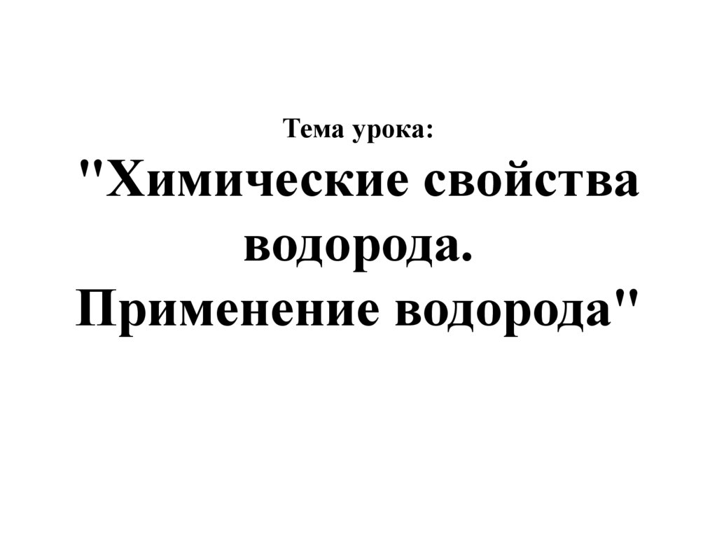 1. Тема урока: "Химические свойства водорода. Применение водорода"