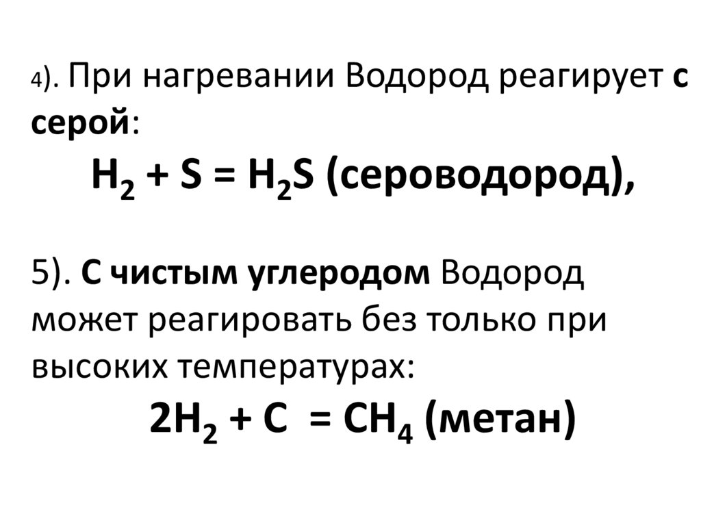При нагревании Водород реагирует ссерой: