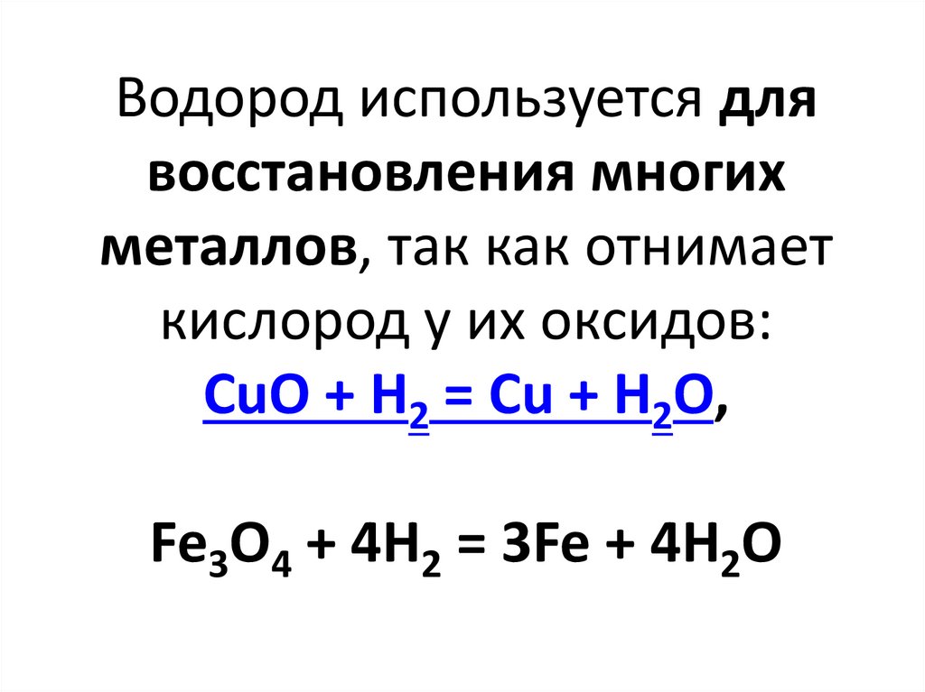 Водород используется длявосстановления многих