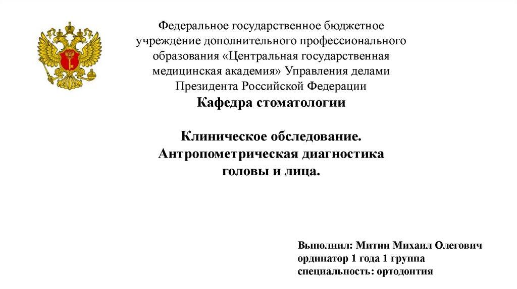 Клиническое обследование. Антропометрическая диагностика головы и лица