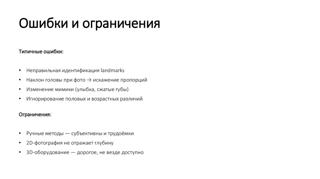 Ошибки и ограниченияТипичные ошибки: