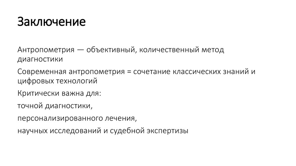 ЗаключениеАнтропометрия — объективный, количественный метод