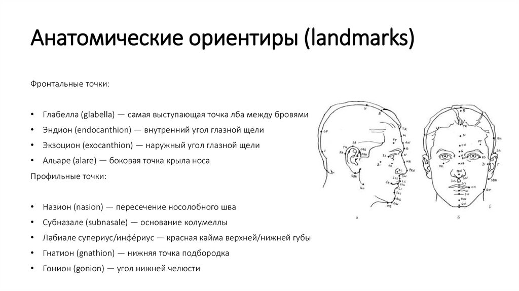 Анатомические ориентиры (landmarks)Фронтальные точки: