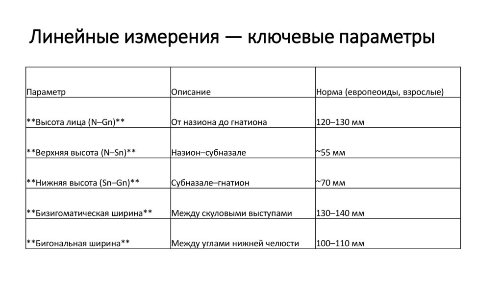 Антропометрическая диагностика головы и лица — ключевой компонент первичного клинического обследования в: