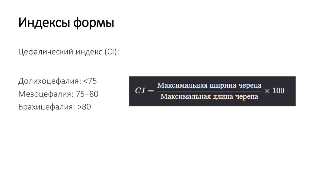 Индексы формыЦефалический индекс (CI):